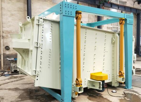 方型搖擺篩的工作是由內(nèi)部激振器產(chǎn)生的偏心力,帶動篩體運動.篩體與水平面有4.5°--5.5°的斜角.物料從后進料口進入以后,通過進料口的分料器使物料進入篩網(wǎng)更寬.落到篩網(wǎng)以后,由于篩機的搖擺運動,使物料迅速的在篩面上展開,并貼著篩網(wǎng)向前運動.讓小于篩網(wǎng)的物料快速透過篩網(wǎng)到下層篩網(wǎng)上面.連續(xù)的一層層篩分物料.很后各種標準的物料從多個出料口分級排出,完成篩分.